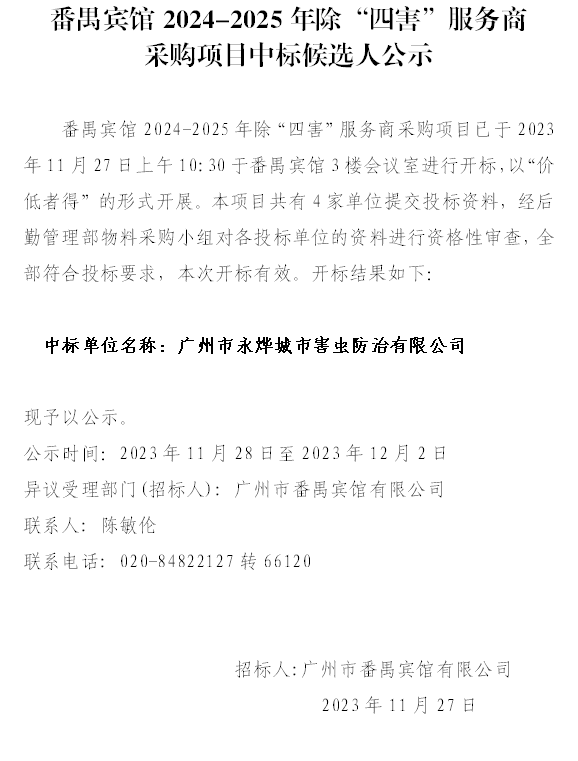 番禺賓館2024-2025年除“四害”服務(wù)商 采購項目中標(biāo)候選人公示 發(fā)布日期:2023-11-27 分享: 下一篇: 【黨建學(xué)習(xí)】二十大報告要點速覽 返回