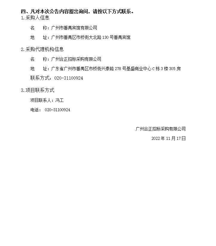 番禺賓館檔案室檔案整理服務及其他相關設施服務單位采購項目恢復采購活動公告 發布日期:2022-11-17 分享: 番禺賓館檔案室檔案整理服務及其他相關設施服務單位采購項目恢復采購活動公告:http://www.hezhenggd.com/index.php/article/118.html 下一篇: 廣州市番禺賓館有限公司客房部洗衣房洗滌用品供應商采購項目招標公告 返回