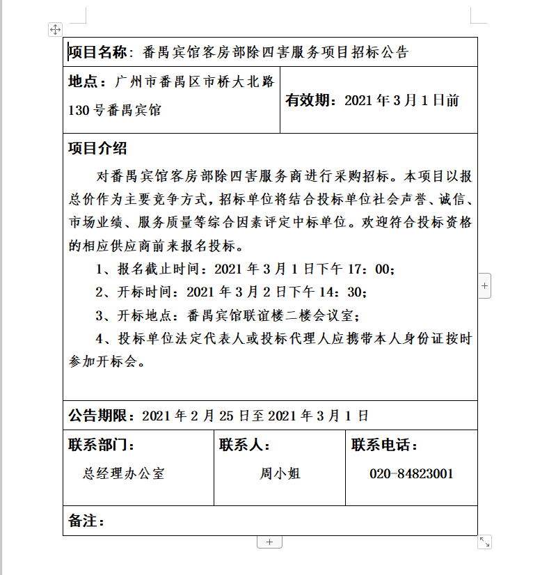 番禺賓館、番禺大廈各部門辦公用品供應商資格項目招標公告