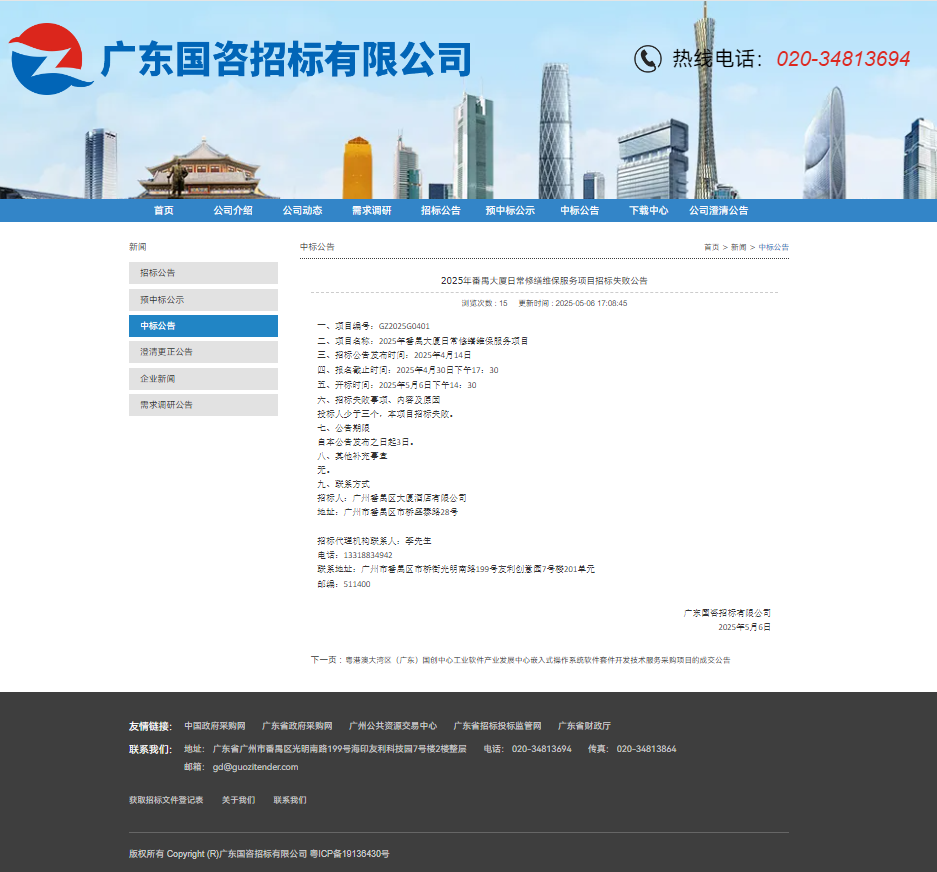 2025年番禺大廈日常修繕維保服務項目招標失敗公告 發布日期:2025-05-06 分享: 詳情請查詢廣東國咨招標有限公司官網:https://www.guozitender.com/article/2025-i03270i1.html 下一篇: 番禺賓館、番禺大廈飲食部五金廚具類供應商資格采購項目招標公告 返回