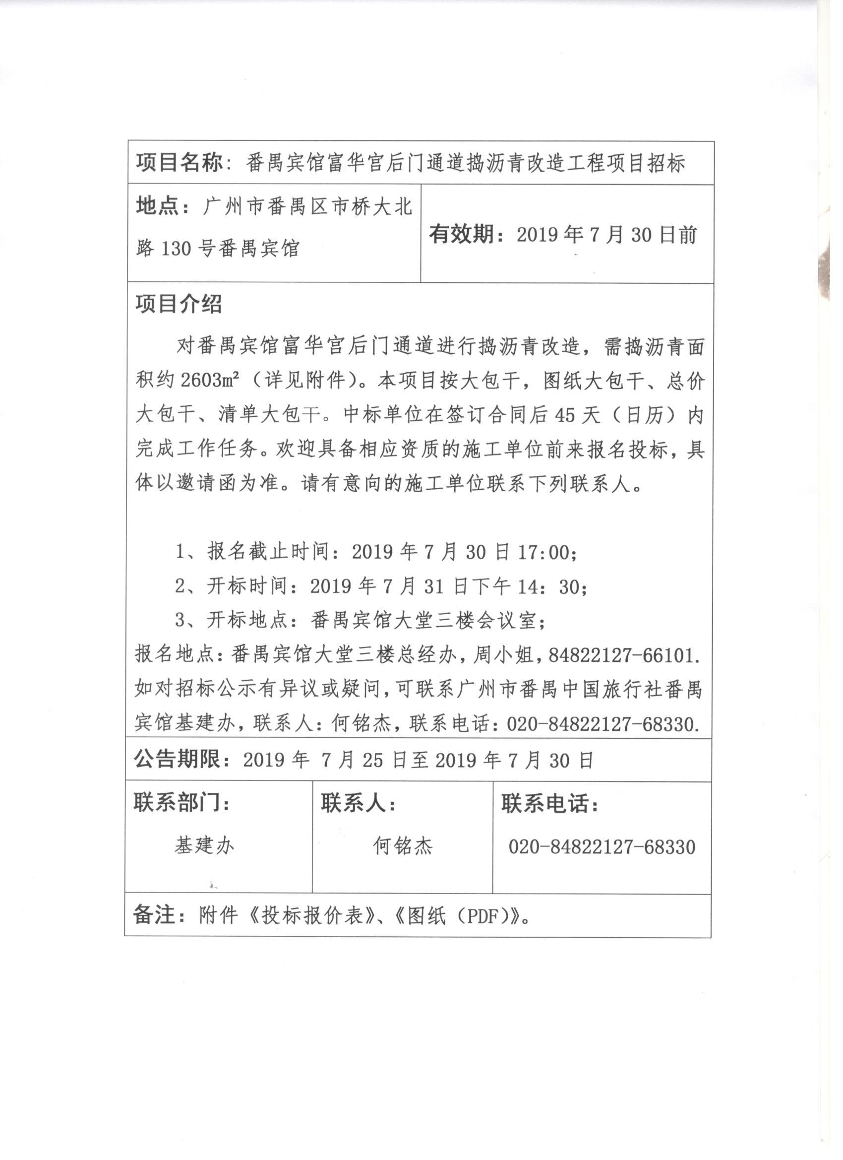 番禺賓館富華宮后門通道搗瀝青改造工程項目招標公告