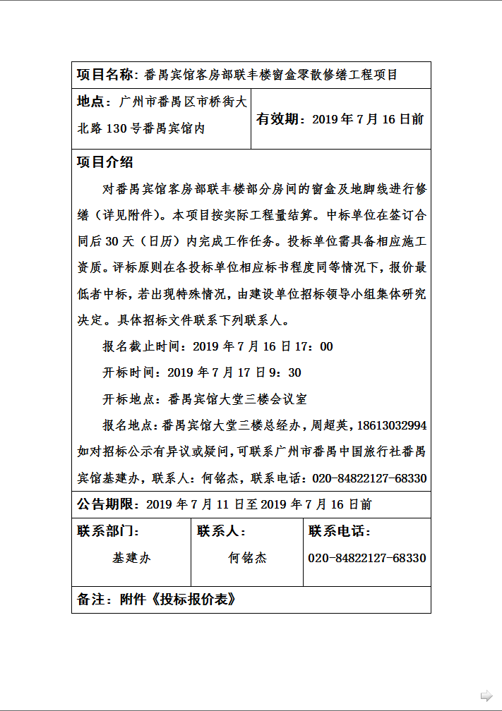 番禺賓館客房部聯(lián)豐樓窗盒零散修繕工程招標(biāo)公示 發(fā)布日期:2019-07-11 分享: 下一篇: 番禺賓館飲食部食品用脫氧劑供應(yīng)商資格采購項目中標(biāo)結(jié)果公示 返回