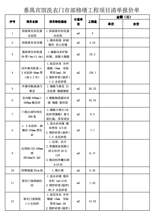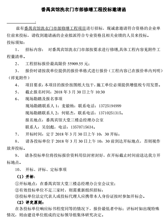 番禺賓館洗衣門市部修繕工程投標邀請函