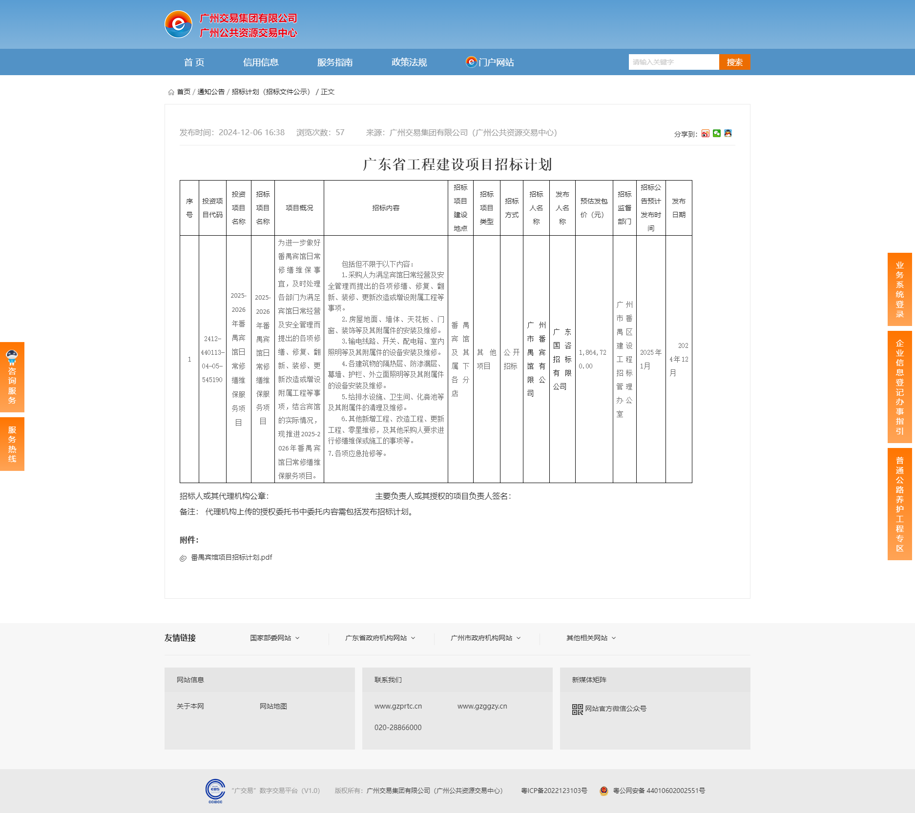2025-2026年番禺賓館日常修繕維保服務項目(招標計劃) 發布日期:2024-12-06 分享: 廣東省工程建設項目招標計劃https://www.gzggzy.cn/tzggzbjh/1025161.jhtml 下一篇: 番禺賓館、番禺大廈飲食部餐飲用具供應商資格項目招標公告 返回