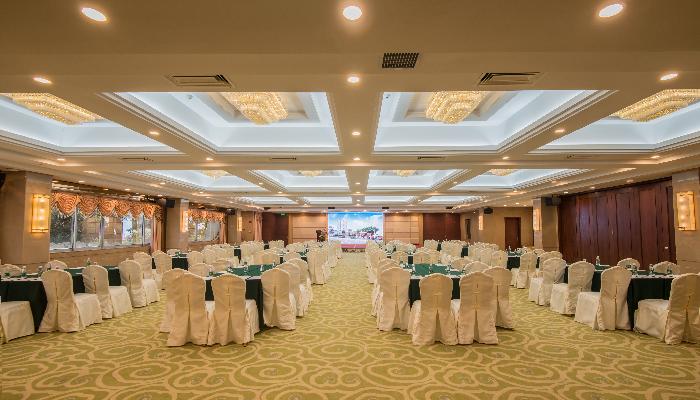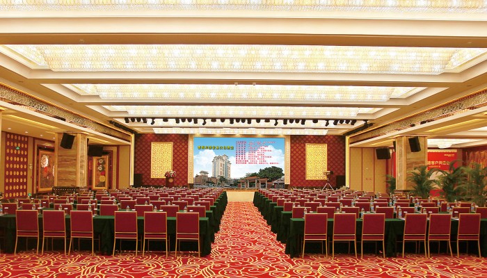 ● 全新豪華裝修的大型多功能會議廳,位于酒店的富華宮三樓,于2013年初正式投入使用,約1000平方米,適合200至800人舉辦會議,場內(nèi)設(shè)大型LED背景屏,寬敞舞臺,齊全的舞臺燈光和專業(yè)音響。